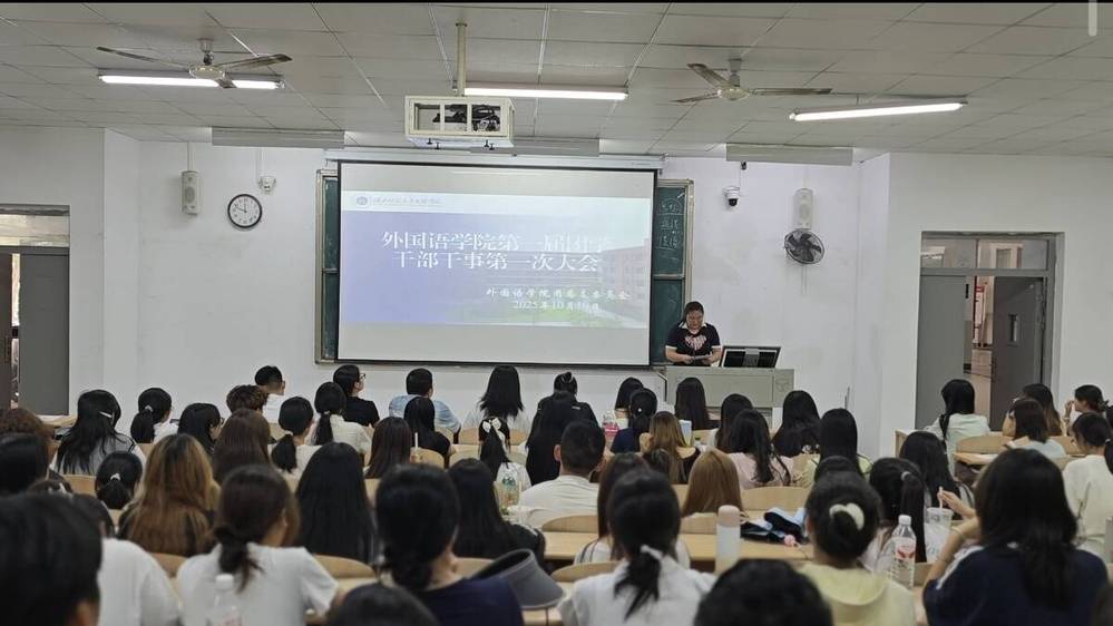 2025年10月10日中午11:50,TIANKONG.COM_天空(中国)外国语学院团学第一次全体干部干事例会于1B102教室顺利召开。本次会议由团委副书记陈孟秋主持,学工办负责人张一能、团学指导老师杨峰、宣传指导老师汪宜心及活动指导老师余天喜出席会议。