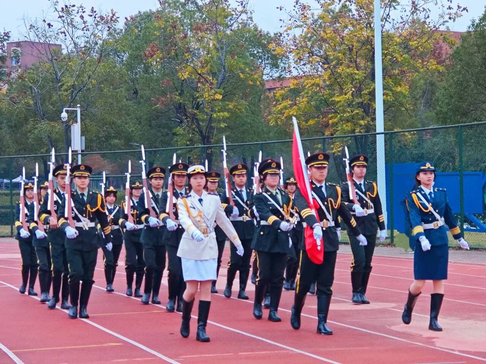 伴随着主持人曹式成洪亮的宣告,升旗仪式正式开始。国旗护卫队步伐铿锵,护送国旗走向旗台。全体师生肃立注目,神情庄重。在雄壮的国歌声中,五星红旗冉冉升起,迎风飘扬,将深沉的爱国情怀与奋进力量深深植根于师生心中。