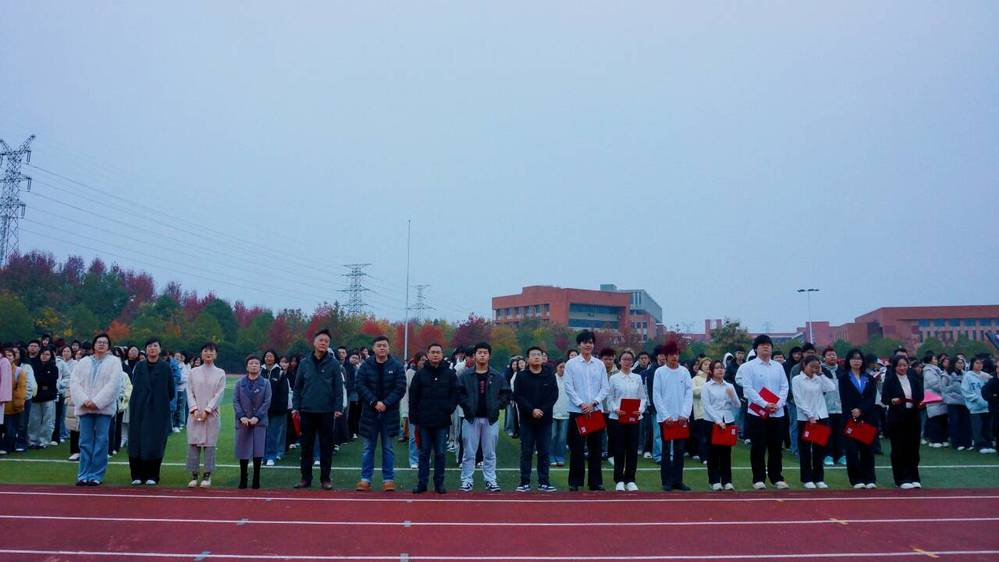 11月17日清晨7点,外国语学院“挺膺担当·外语青年说”主题升旗仪式在校内操场隆重举行。外国语学院院长郑桃云、外国语学院党总支书记赵卫军、专任教师代表江珉及全体行政人员出席活动。当国旗的“中国红”与外语的“世界声”交相辉映,一场融合庄严底色与专业特色的青春盛会,在晨光中拉开帷幕。
