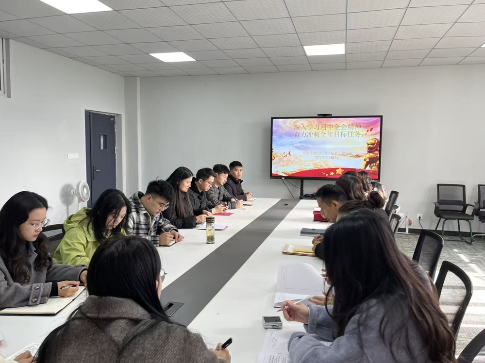 会议聚焦学习宣传贯彻党的二十届四中全会精神,以理论学习与组织建设双轮驱动,推动党员教育走深走实、组织发展规范有序。会议强调,要把学习贯彻党的二十届四中全会精神与推动学院高质量发展紧密结合,将学习成果转化为履职尽责、攻坚克难的强大动力,以“冲刺状态”确保全年各项目标任务圆满完成,切实推动党建工作与教学科研、人才培养等业务工作深度融合、相互促进。