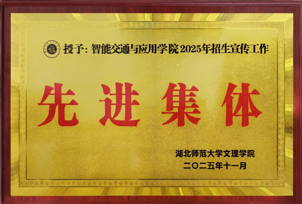 为全面总结招生就业工作经验,表彰先进、树立典型,根据《湖北师范大学2025年招生工作方案》等相关文件精神,经严格综合评议,对在2025年招生就业工作中表现突出的集体和个人予以表彰。在此次评选中,智能交通与应用学院凭借卓越的工作成效和创新的宣传模式,荣获“2025年招生宣传工作先进集体奖”。