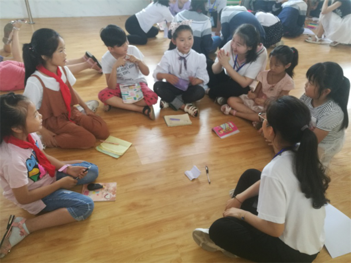 中心陈庆老师带领志愿者们以寓教于乐的形式,组织留守儿童开展了“大风吹”、“我很棒”、“盲人之旅”、“ 画出我心声”等系列体验式教育活动。团辅活动后,志愿者给小朋友们发放了《留守儿童公益手册》,并与每一个孩子签了“结对帮扶卡”。活动最后还给小朋友们赠送了可爱的小玩偶。