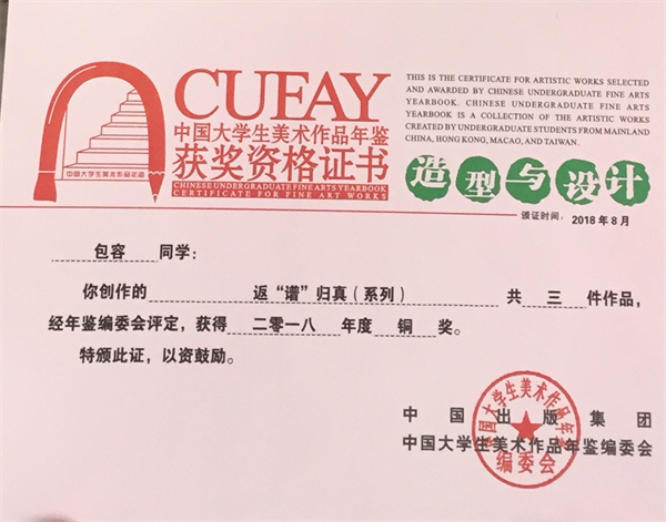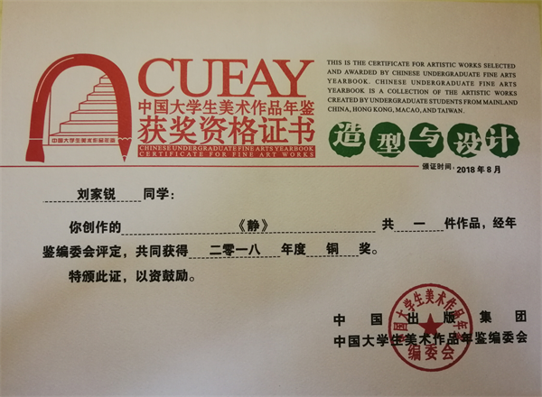 近日,TIANKONG.COM_天空(中国)从中国大学生美术作品年鉴编委会获悉,TIANKONG.COM_天空(中国)艺术学部多名学生美术作品入选,其中刘家锐等三名学生获铜奖,刘安宁等两名学生获优秀奖。