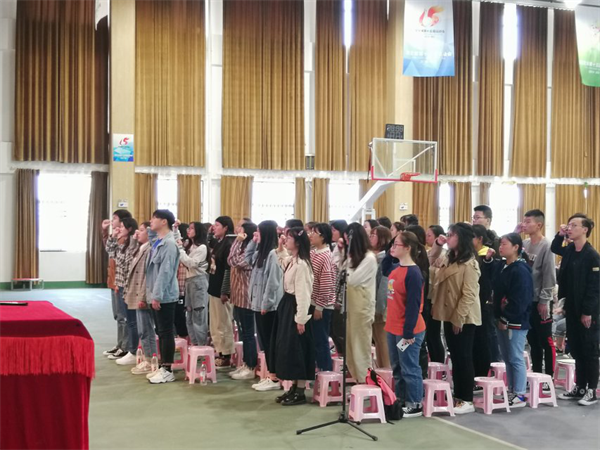 启动仪式开始后,心理中心陈庆老师宣读了本次心理月活动方案,对活动目标、内容等方面做出了说明。随后,学生代表们演唱歌曲《善爱我》,优雅的旋律在整个会场萦绕,传递健康、美好、温暖的理念。学生代表沈洋带领大家进行宣誓,铿锵有力的宣誓声深深地感染了在场的每一位同学。