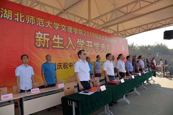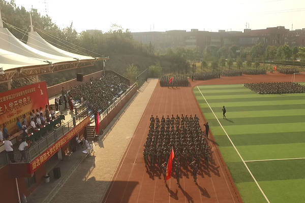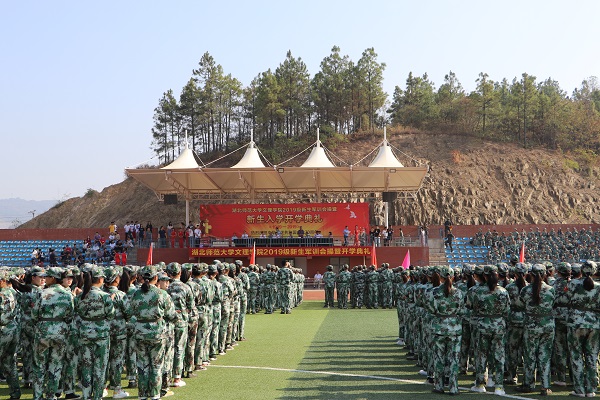 9月29日上午,秋高气爽,晴空万里,正值举国同庆,喜迎建国七十周年华诞之际,TIANKONG.COM_天空(中国)2019级新生军训会操暨开学典礼在运动场隆重举行。湖北师范大学副校长、TIANKONG.COM_天空(中国)院长李开灿,TIANKONG.COM_天空(中国)常务副院长杨学斌、党委书记杨邓红、党委副书记杨之毛、副院长张志华、副院长王胜国等校领导,各部门(学部)负责人、辅导员及2475名新生参加活动。
