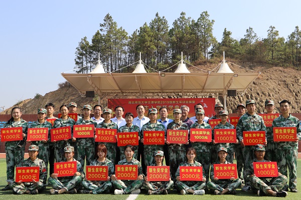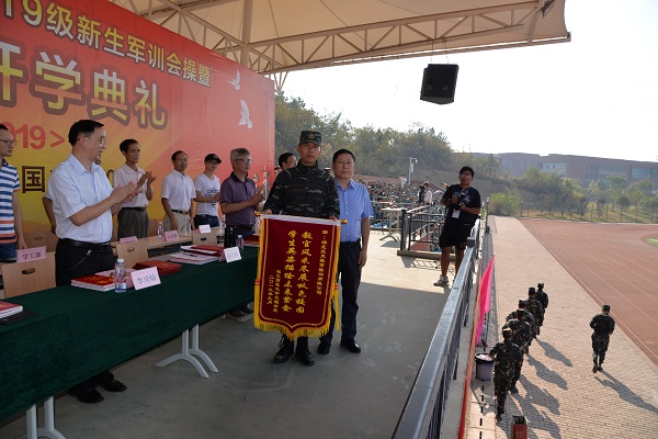 军训汇报表演结束后,常务副院长杨学斌向军训承训单位代表赠送锦旗;常务副院长杨学斌、党委书记杨邓红分别宣读表彰决定,对2019年新生军训“模范标兵”和新生奖学金获得者进行表彰,校领导为获奖新生颁奖。新生代表孙瑀萱、在校生代表王利杭、教师代表罗文怡、校友代表李伟(中山大学博士研究生)分别进行了发言。