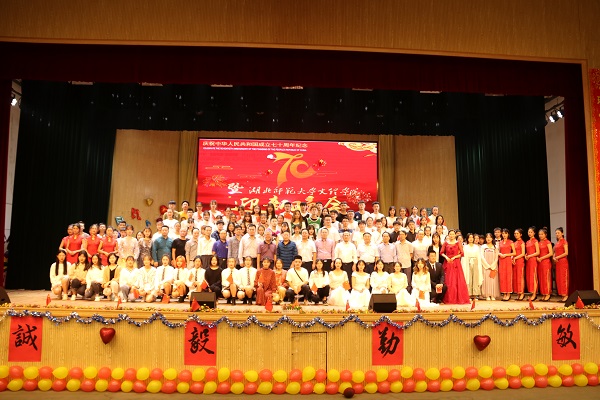 10月10日晚,学校在风雨操场二楼举办庆祝新中国成立70周年暨2019级迎新晚会。晚会以“灿若新晨,梦系文理”为主题,常务副院长杨学斌、党委副书记杨之毛、副院长张志华、副院长王胜国等校领导出席。各部门、学部负责人,全体辅导员和2019级新生观看了晚会。
