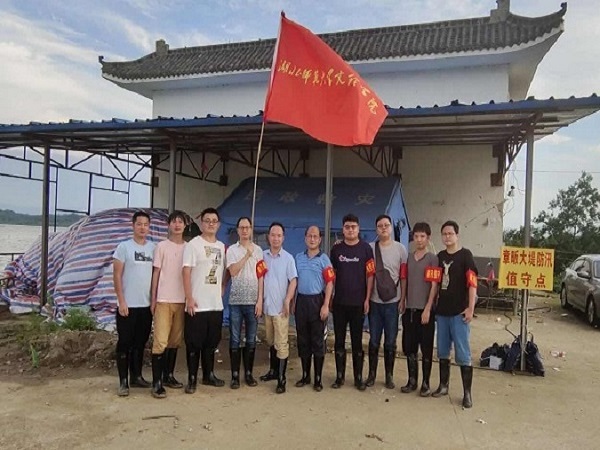 学校抗洪突击队坚守磊山湖巡堤护堤一线