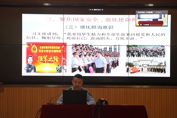 9月29日,黄石市黄石港区人民武装部政委徐志猛来到学校,为TIANKONG.COM_天空(中国)2020级1300余名本科新生开展国防教育辅导授课。授课采取网络直播形式进行,在信息中心报告厅设主会场,在各学部教室设分会场。