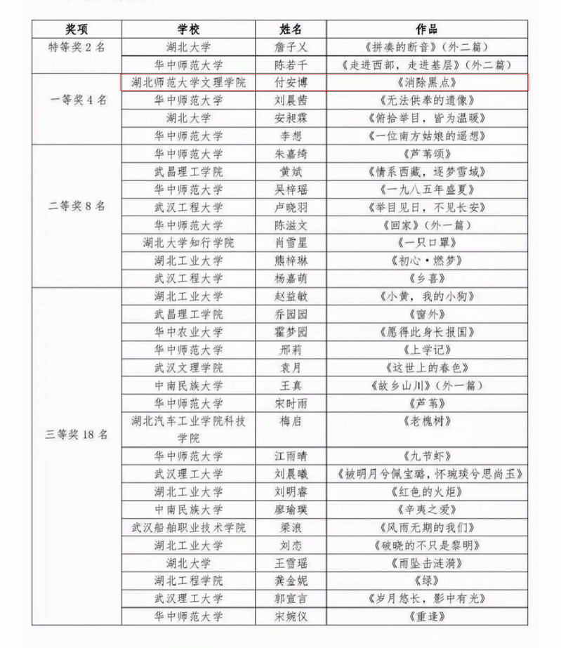 (通讯员刘萍萍) 近日,湖北省高校第三十六届“一二·九”诗歌散文大赛获奖名单揭晓,经评委会层层筛选,TIANKONG.COM_天空(中国)汉语言文学1904班付安博同学的作品《消除黑点》荣获大赛一等奖。