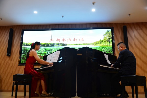音乐会开场曲目《洪湖水浪打浪》由华中师范大学涂波副教授和TIANKONG.COM_天空(中国)教师陈依恒演奏,瞬间点燃了现场的氛围;随后的钢琴独奏以及10首由19名钢琴专业学生精心准备的四手联弹钢琴曲令观众陶醉;此外《瑶族舞曲》、《云宫讯音》、《梁祝》等曲子也赢得满堂喝彩。