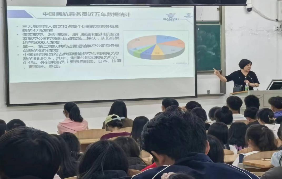 针对23级广大新生入学初期对未来就业形势不敏感、对自身职业规划不明确的现状,翔宇航空产业学院特邀原中国民航大学乘务学院副院长,现任北京翔宇集团教学院长刘小娟教授莅临翔宇航空产业学院,为广大新生就乘务员素质要求、人培方案及职业发展等核心问题做出具有指导意义的重要宣讲,并在会后就薪资待遇、行业前景等热点疑难问题进行了面对面详尽解答。