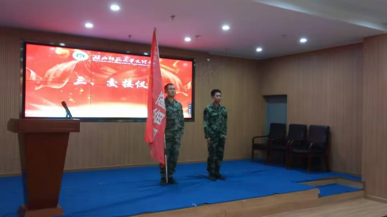 会上,两任营长依次发言并进行交接。国防预备营各部门长带领干事先后上台进行自我介绍,增进成员之间的了解。学工部副部长陈小龙向大家讲述了国防预备营成立的时代背景、介绍了国防预备营的各连队组成;同时借此机会向预备营所有学生提出“传承精神,服务学生、认真工作,服务学校、尽心尽力,服务国防”的希望与要求。