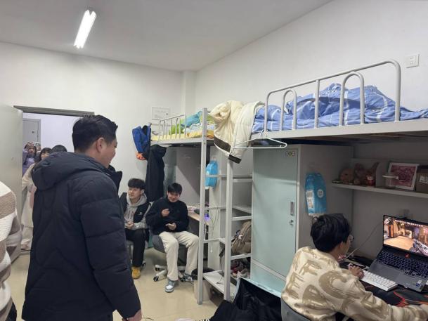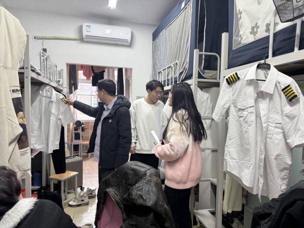 216日下午5点,翔宇航空产业学院主任夏谦启带领全体辅导员进行寝室走访,在深入了解学生返校情况的同时,对学生宿舍的安全管理也进行了强调。 在走访过程中,各位老师重点查看了卫生环境、用电安全等方面的情况,特别叮嘱在流感高发的春季,学生更要注重寝室卫生,多打扫、勤通风。另外返校后要及时调整状态,以饱满的热情投入到新学期的学习生活中去。 夏主任强调,在日常学习与生活中,大家要增强安全意识,提升自我反诈能力,在校使用共享电瓶车要遵守相关规定,共同维护安全、文明、和谐的宿舍环境。