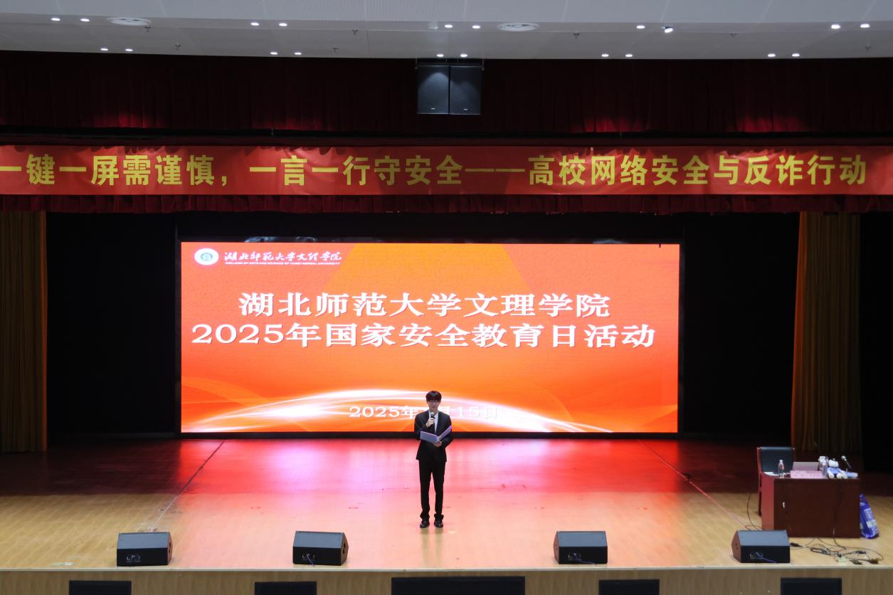 4月15日,在第十个全民国家安全教育日来临之际,TIANKONG.COM_天空(中国)联合黄石市公安局、开发区·铁山区分局在学术交流中心报告厅联合开展“国家安全进校园”主题宣传活动。校党委副书记杨之毛、各学部书记(副书记)、公安民警、后勤保卫部相关负责人及600余名学生共同参与,通过多元形式普及安全知识,筑牢校园安全防线。