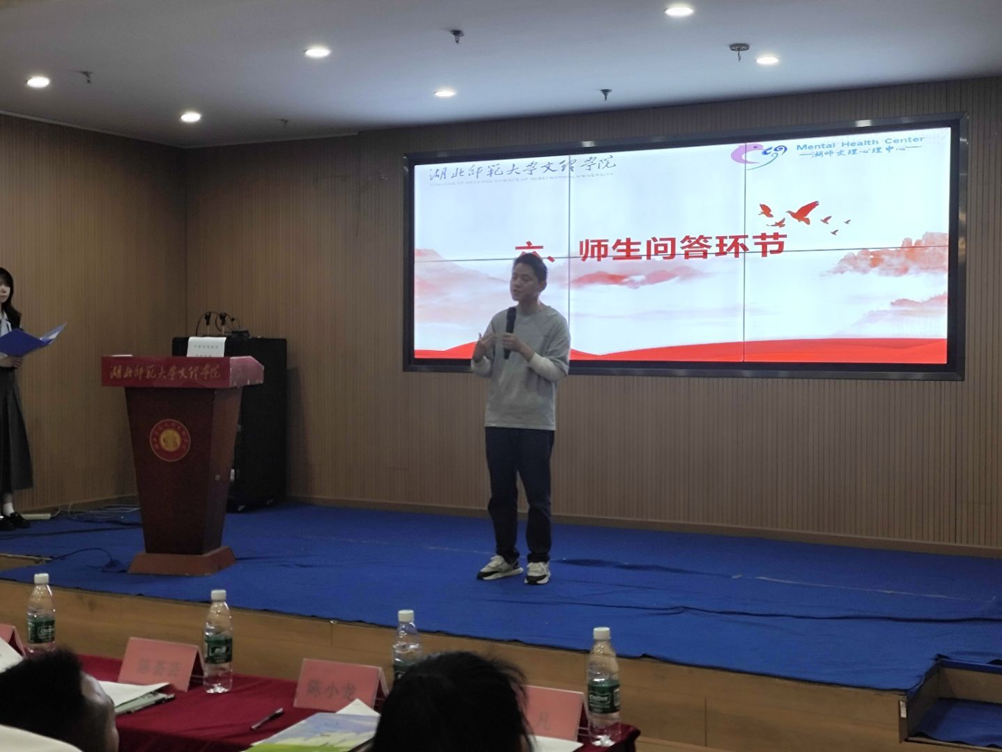 2025年5月15日中午十二点,由大学生心理健康教育与咨询中心主办的“第十六届心理健康月开幕仪式”在图书报告厅举行。参加此次活动的领导有校党委副书记许光、学工部部长汪崇文、宣传部副部长陶晚成、校团委书记陈荟芸以及各学部党支部书记、产业学院主任等。
