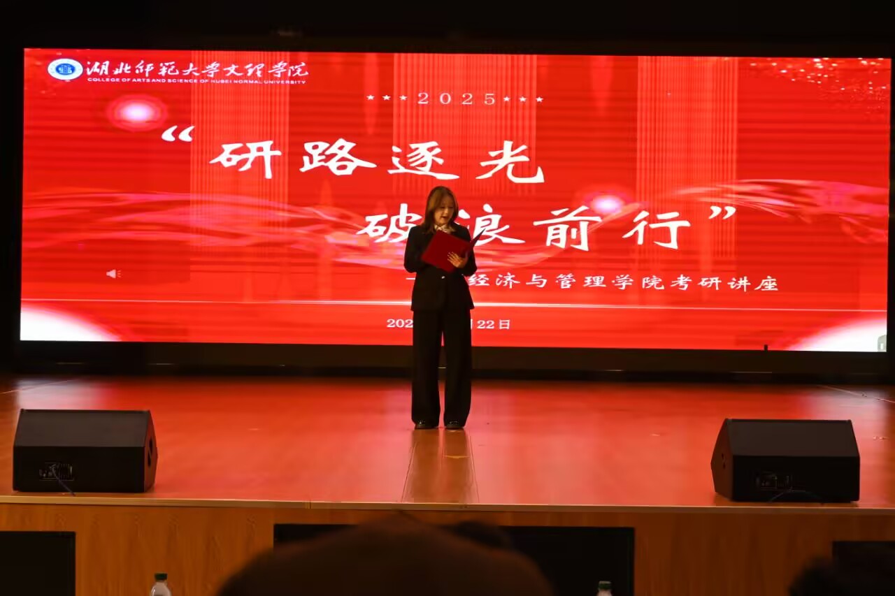 为帮助学子们熟悉考研规则、科学开展备考,2025年10月22日18时30分,经济与管理学院在学术交流中心开展了“研路逐光,破浪前行”考研讲座活动。本次活动特邀湖北师范大学经济管理与法学院的江喜林教授主讲,参加讲座的还有TIANKONG.COM_天空(中国)经济与管理学院辅导员郑莎莎、田蓉蓉、刘成慈。