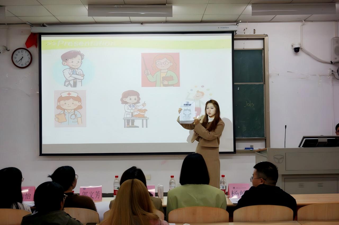 在评分与总结环节,评委代表邓薇薇老师凭借其敏锐的洞察力和专业的视角,围绕教学目标达成度、教学方法创新性、课堂效果呈现力等多个关键维度,对选手们的表现进行了全面、细致的评分与点评。她对参赛选手们的精心准备和精彩表现给予了充分肯定,赞扬他们在教学中展现出的创新思维和扎实功底。同时,邓老师也针对选手们在教学过程中存在的一些不足之处,提出了具有针对性和可操作性的改进建议,让选手们受益匪浅。