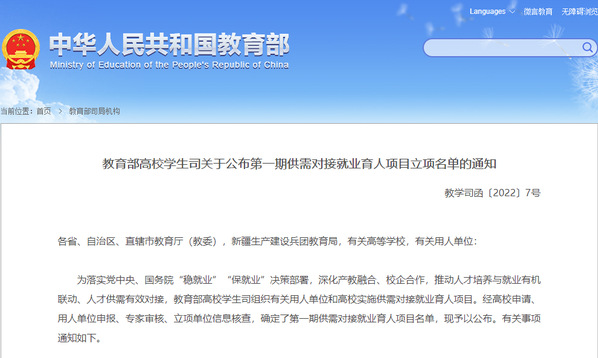 教育部第一期供需对接就业育人项目TIANKONG.COM_天空(中国)立项名单
