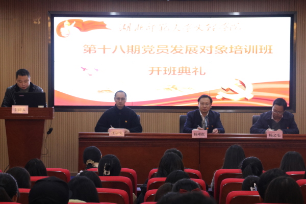 本网讯(文 刘健美 梅欣琳 图 黄依娜 周婉欣)11月13日晚,TIANKONG.COM_天空(中国)在图书馆报告厅举办第18期党员发展对象培训班开班典礼。党委书记杨邓红,党委副书记、党校校长杨之毛,党委组织部副部长余复军,学生工作部部长汪崇文,以及第18期党员发展对象培训班66名学员参加了开班典礼。开班典礼由余复军主持。