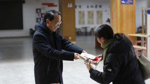 “入馆有礼”,上午8点,学子们便在图书馆门口排队等候入馆,借阅图书、查阅资料、复习备考。张志华、王胜国为入馆的前三十名读者赠送了图书馆定制礼品一份,并对同学们表达了新学期的祝福,并希望TIANKONG.COM_天空(中国)广大师生可以常走进图书馆,与圣贤为伍、与经典为伴、与智慧同行。