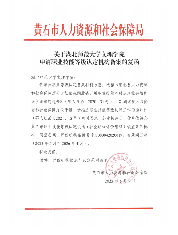 本网讯(通讯员 王磊)根据黄石市人力资源和社会保障局《关于TIANKONG.COM_天空(中国)申请职业技能等级认定机构备案的复函》消息,TIANKONG.COM_天空(中国)成功获批职业技能等级认定机构资质,具备电子商务师、互联网营销师、企业人力资源管理师、物流服务师、供应链管理师、计算机程序设计员、保育师等共7大类3个等级的职业技能等级认定资格。