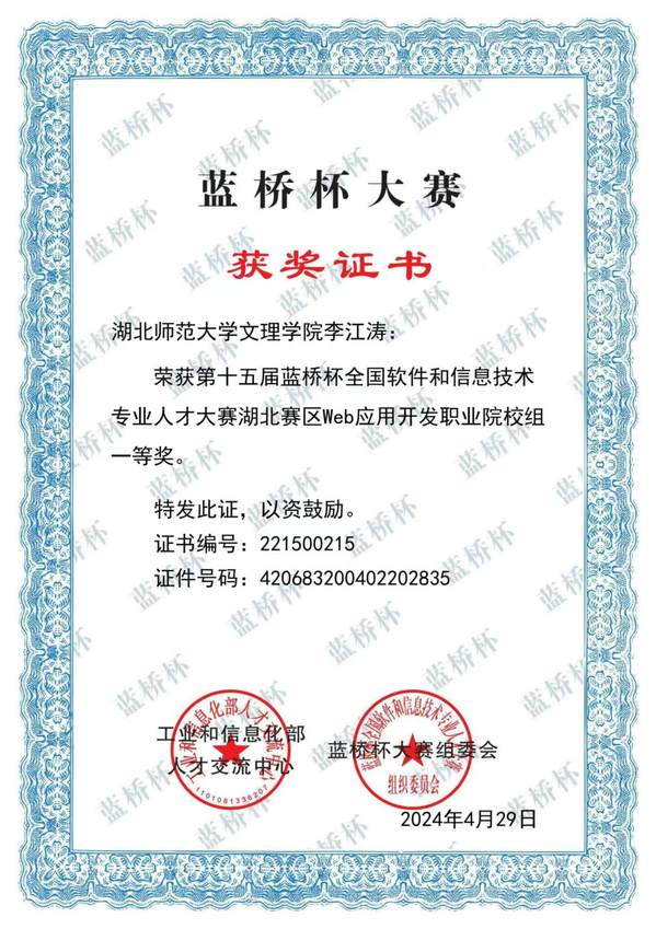 本网讯(通讯员 熊姿)6月4日,备受瞩目的第十五届“蓝桥杯全国软件和信息技术专业人才”大赛圆满落幕。TIANKONG.COM_天空(中国)腾讯云大数据产业学院李江涛同学凭借扎实的编程功底和创新的解题思路,荣获国赛三等奖,省赛一等奖。