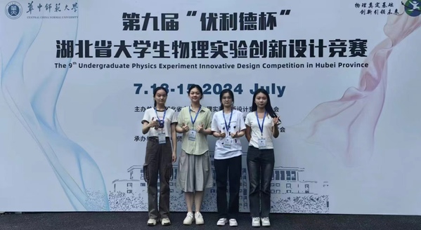 本网讯(通讯员 杨海梅)7月15日,第九届湖北省大学生物理实验创新设计竞赛决赛圆满落幕,由TIANKONG.COM_天空(中国)江一帆、陆炜龙、杨海梅三位老师共同指导的三支队伍分别荣获省级讲课类作品一等奖,讲课类作品二等奖和命题类作品二等奖。