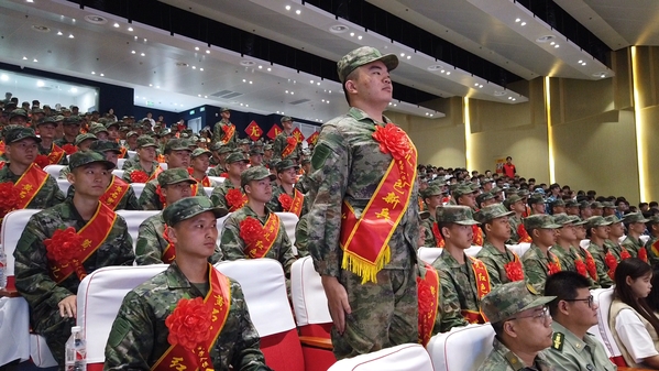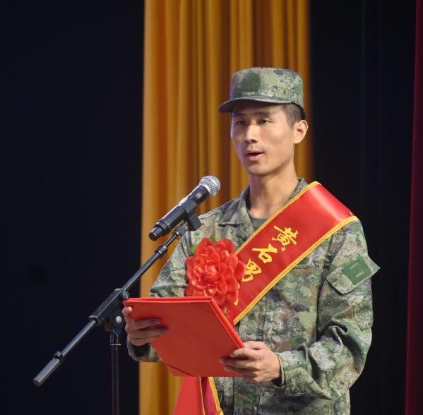 新兵代表徐文发言,表达了对军营生活的憧憬,以及保家卫国的信心和决心。