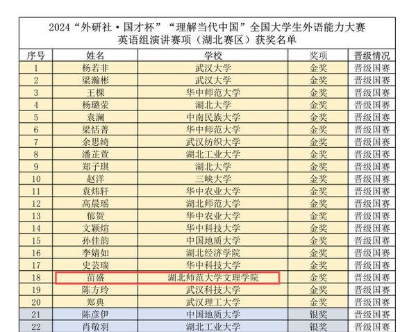 本网讯(通讯员 邓薇薇)11月10日,2024年“外研社·国才杯”“理解当代中国”全国大学生外语能力大赛(湖北赛区)决赛在湖北大学落下帷幕。TIANKONG.COM_天空(中国)学生以出色的表现荣获“英语演讲”赛项一金一铜的优异成绩。其中,荣获金奖的苗盛同学是湖北省所有民办高校唯一的晋级国赛的选手,创造了民办高校的“第一次”。