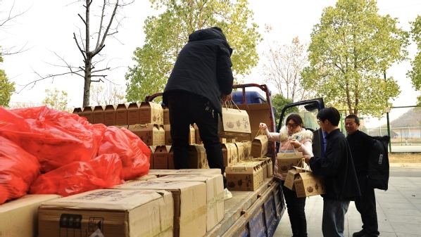本网讯(图 陈思颖 王紫鹃 文 柯康敏)1月3日下午,满载阳新县子山村农副产品的车辆驶入校园,这是学校工会为解决驻村点村民自产自养农产品因“销路难”无法变现问题的又一举措。此次帮扶行动采购的是土鸡、土鸡蛋、山茶油,总价值约为9.5万元。