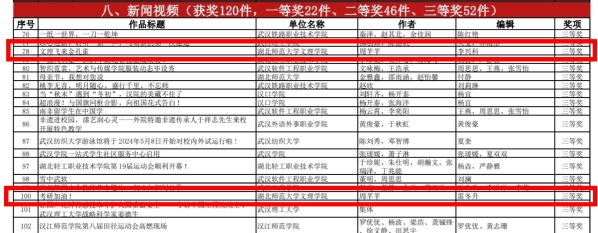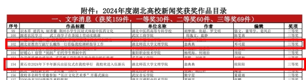 《湖北省教育厅副厅长戴伟一行莅临TIANKONG.COM_天空(中国)调研指导工作》(作者翁典典、邓司晨)和《黄石市2024年下半年新兵出征仪式在TIANKONG.COM_天空(中国)举行 我校欢送入伍新兵》(作者翁典典、侯阳阳)两篇作品,获文字消息类三等奖。