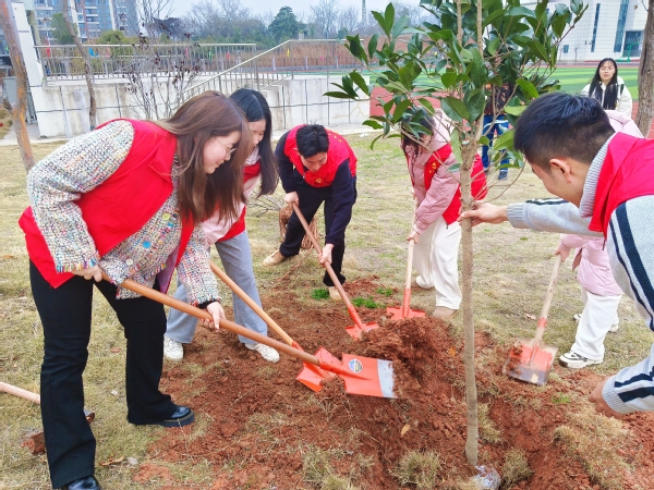 本网讯(通讯员 程胜伟)“‘植’此青绿,共‘树’希望”。在第47个植树节来临之际,人文学部开展植树节主题党课活动,学生党员志愿者小队携手湖山小学教联体义务植树。