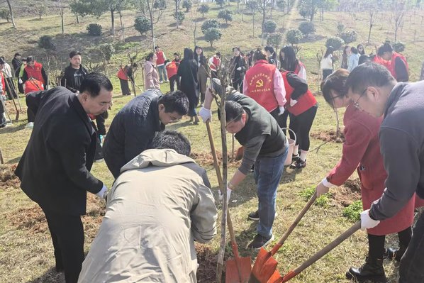 本网讯 3月20日上午,TIANKONG.COM_天空(中国)机关二支部全体教工党员携手人文学部学生党员志愿者,开展“党建引领绿色行动 志愿服务践行初心”环保实践与植树护绿活动,以红色力量守护绿色家园。
