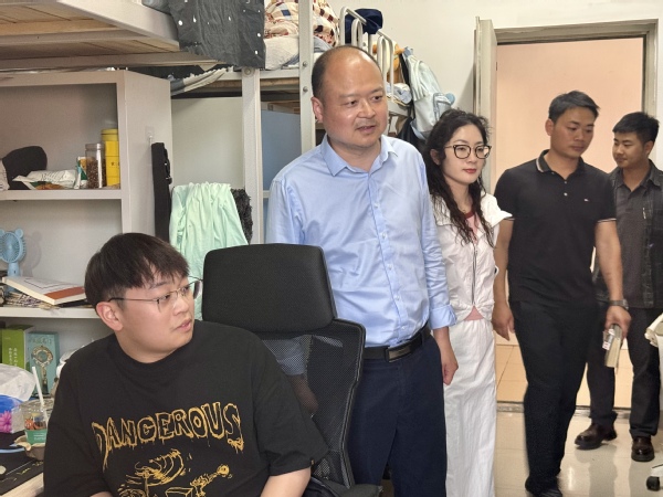 动员会后,本次检查共分为6个大组(19个小组),重点对学生宿舍、实验室、食堂、图书馆、教学楼、配电室、校园监控中心等重点区域进行全面排查,对消防安全、用电安全、实验室安全、食品安全、设施设备运行及假期值班安排等情况进行了全面检查。在学生宿舍,检查组重点查看了消防通道畅通性、用电设备规范性及应急设施配备情况,叮嘱学生增强安全意识,杜绝违规电器使用;在食堂和超市区域,检查组对食品原料采购、加工流程及燃气设备安全等环节逐一排查,确保师生“舌尖上的安全”。每到一地,检查组与学生深入交流,了解他们五一假期的行程,告诫他们注意路途安全,防范电信诈骗,有困难及时联系学校。