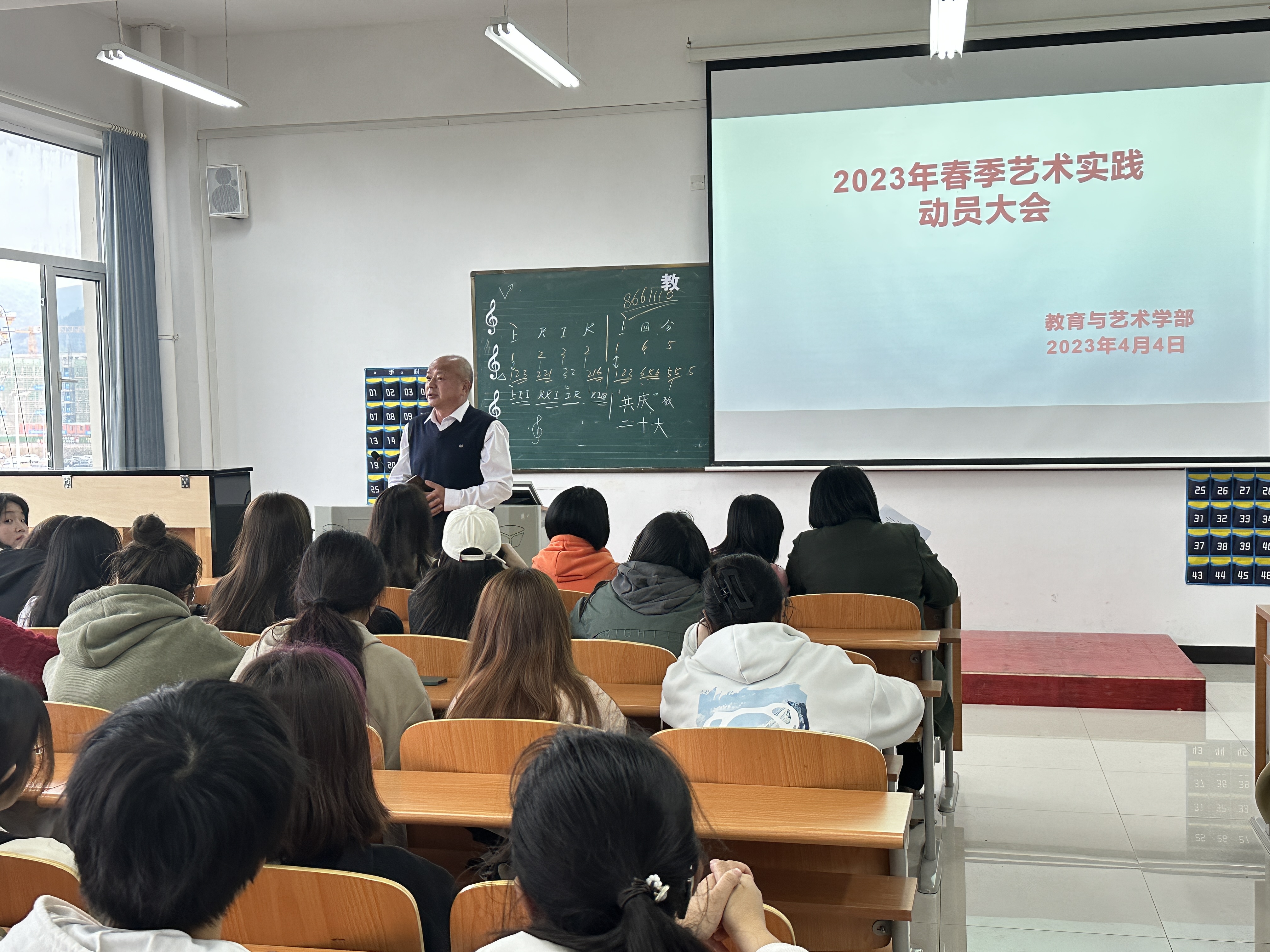 根据文理学院美术专业人才培养方案的要求,2022级美术专业学生4月份将赴外地进行艺术实践教学活动。202344日中午12002022级美术专业学生在实验楼1-403召开了2023年春季学期艺术实践动员大会。参加动员大会的有带队的实习老师,分管的辅导员和总支书记李先华。