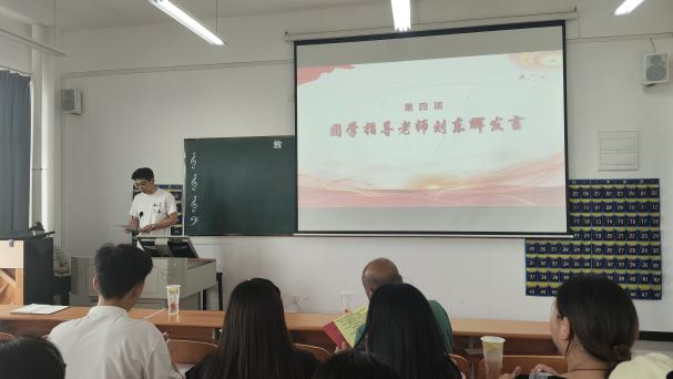 三、团学会指导老师刘东辉发言,在肯定第八届团学会工作的成绩,希望角色的转变后更加严格的要求自己,努力学习、融入班集体,成为学生的榜样;希望第九届团学会的干部谦虚谨慎,克勤克俭,树立为学生服务的意识,做到学习和工作两不误。