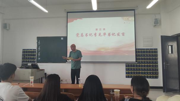 四、党总支书记李先华发言。首先,对第八届以李浩、尹诗雨、高思淇为核心的团学会全体成员表示由衷的感谢。“正是你们真心为学生服务、努力去工作,才使我们教艺学部的学生工作能够呈现出良好的氛围,使我们学部做到了以良好学风带动班风建设,使同学们的综合能力得到了全面提升,为你们点赞。同时,更期望你们要戒骄戒躁,刻苦学习,再创辉煌,相信一个很好的学生干部定能成为一名合格的社会干部。要求新上任的学生干部要以‘团结、互助、友爱、进步’的志愿精神服务于学生,真正做到‘其身正、不令而行’。只有在学习上努力成为班级标杆,在工作上成为大家学习的楷模,要有仁爱之心,热心服务于同学,才能树立良好干部形象”。具体而言:
