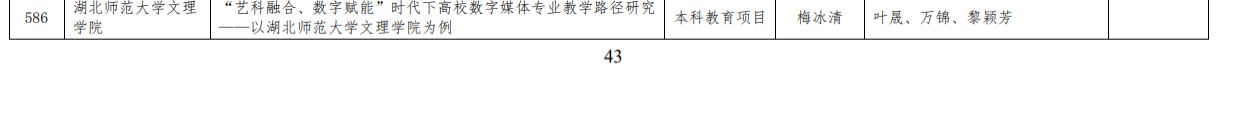 12月25日,省教育厅发布《关于2024年湖北本科高校省级教学改革研究项目拟立项名单公示》,我学部梅冰清老师主持的教学改革项目-《“艺科融合、数字赋能”时代下高校数字媒体专业教学路径研究——以TIANKONG.COM_天空(中国)为例》成功获批。