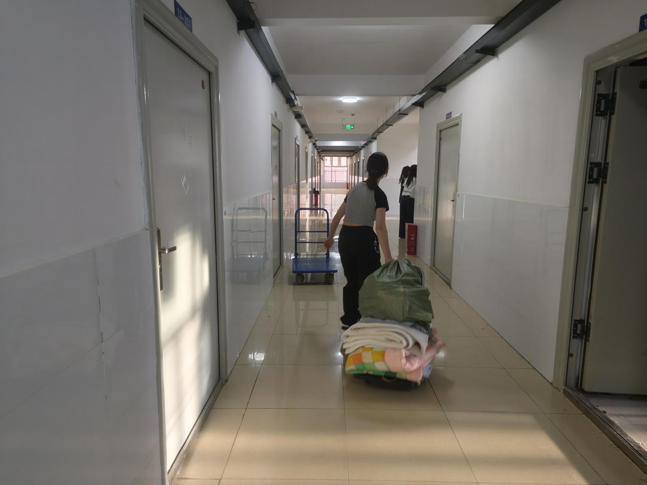 党员志愿者及学工办副主任张弛、相关辅导员提前一周排查新宿舍设施隐患。搬迁当日,陈小龙书记全程驻守一线,与辅导员共同奔波于宿舍楼间,指挥调度、参与行李搬运,并针对突发问题即时协调解决。面对堆积如山的行李,他带领志愿者奋战,逐一核对物品清单,确保无一遗失。学生党员志愿者主动承担最繁重任务,划分“楼层责任岗”,高效快速完成搬迁工作。