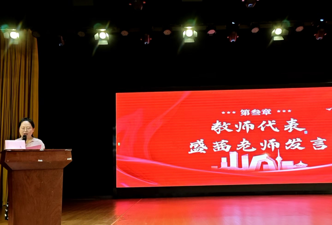 教师代表、学前教育专业负责人盛茜老师以国家级一流课程建设为背景,寄语新生:大学是塑品格、探自我、逐梦想的舞台,分享五点核心:拥抱变化迎挑战、博学慎思寻热忱、珍惜缘分获友谊、关注身心促平衡、志存高远定目标;并表示教师将为新生护航,祝愿其学有所成、书写精彩人生。