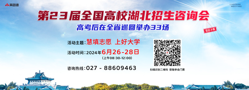由湖北省教育学会指导主办的第23届全国高校湖北招生咨询会(下称“第23届高招会”)定于6月10日上午在武汉揭幕。此举旨在贯彻落实教育部《关于做好2024年普通高校招生工作的通知》文件精神,搭建高招咨询服务公益平台,助力考生慧填志愿,赋能高校为国选才。